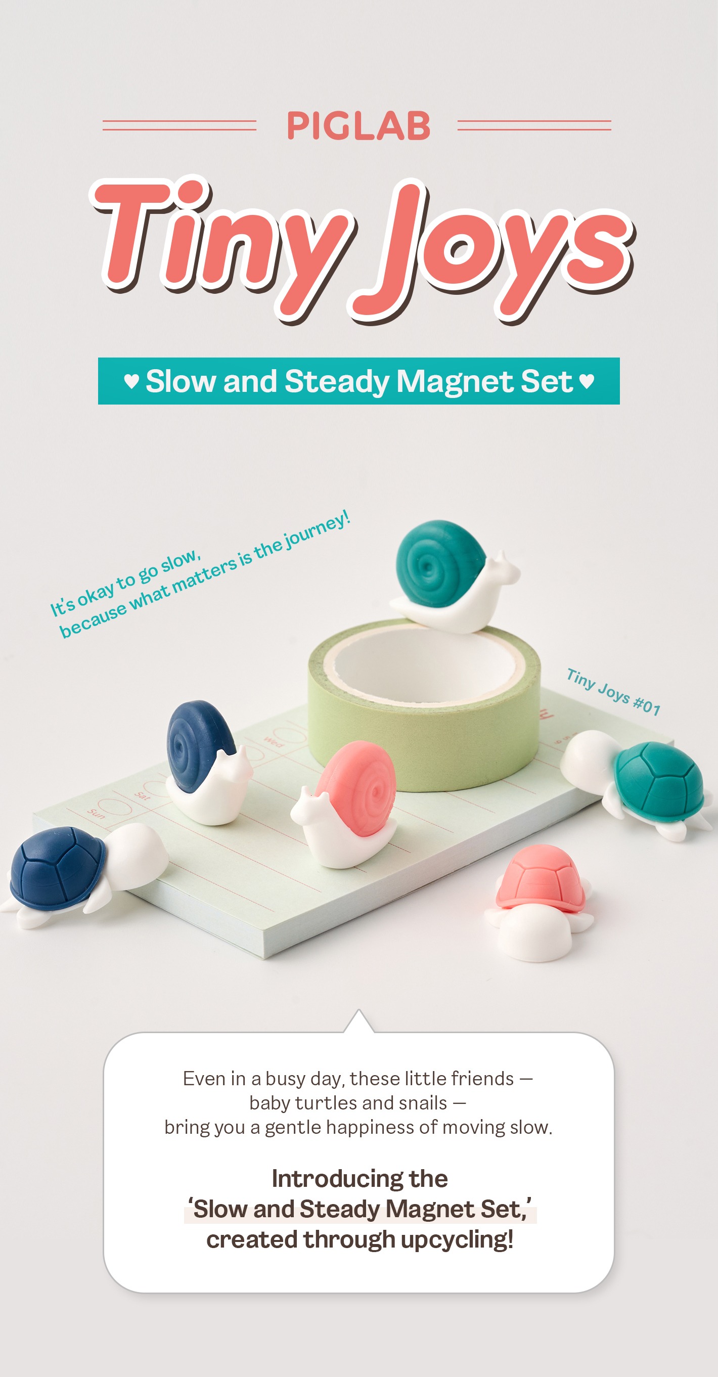 The very first of this series, the Slow and Steady Magnet Set, takes inspiration from the gentle pace of turtles and snails — small in size, but full of warmth.